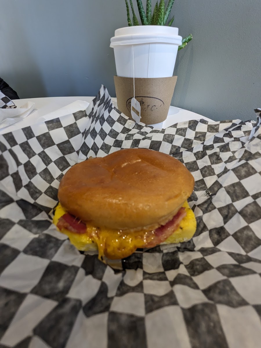 Grand Cafe is a nice locally owned coffee shop. They make good coffee drinks and serve a simple yet tasty bacon, egg and cheese breakfast sandwich. It's a nice and quiet spot to start your day.